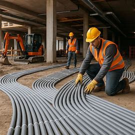 Electrical cabling, site power setup, safety compliance, and infrastructure installation for construction projects.